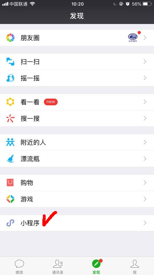웨이신(WeChat)어플에서 "검색"을 누르시면