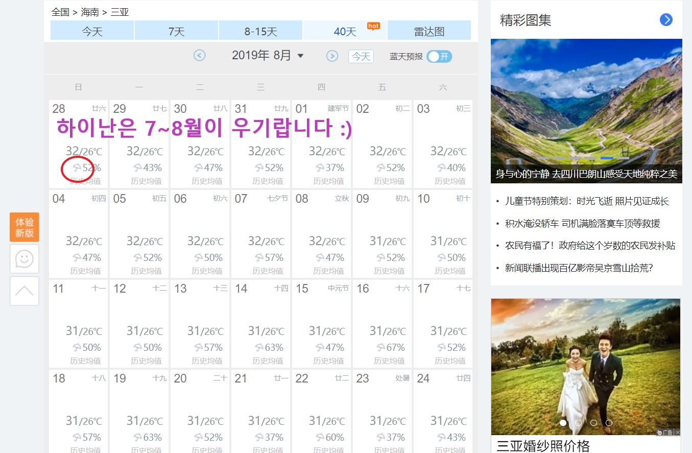 (7월 8월 하이난 날씨 / 중국날씨사이트 / 중국 일기예보)