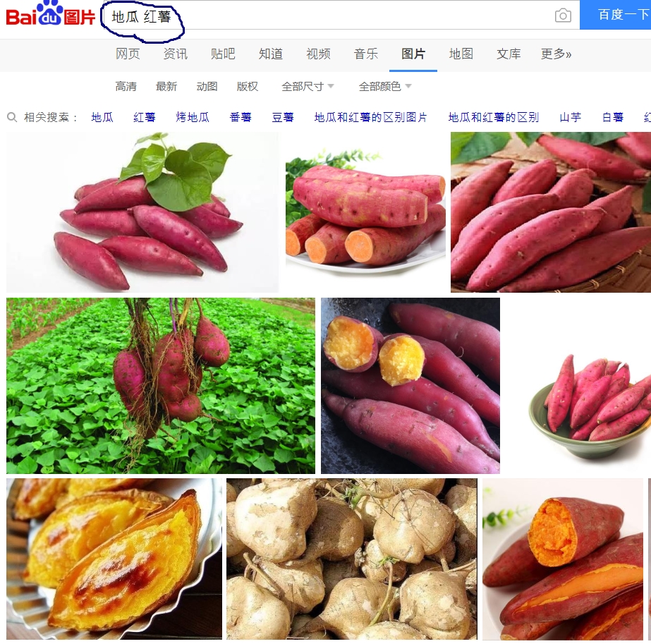 ▼바이두에서 둘다 검색해봤어요. 고구마가 나와요 ㅎㅎ